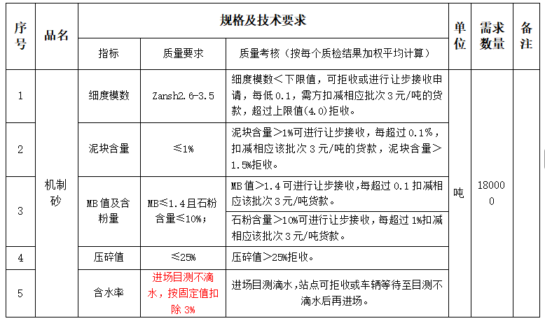 交貨期:要求所有水洗機制砂供應滿足生產(chǎn)需求。